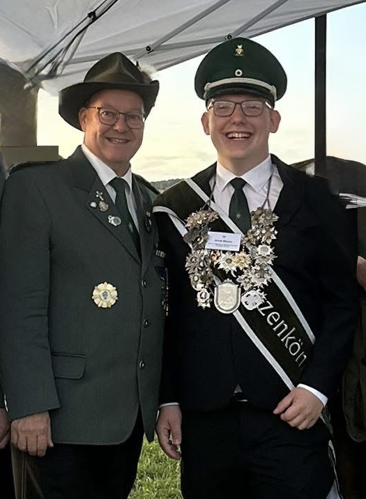 Der neue Bundesjungschützenkönig steht fest. Mit dem 205. Schuss sicherte sich in einem spannenden Schießen der 23 jährige Jonas Bäcker von der Schützenbruderschaft St. Sebastianus Dünschede 1884 e. V. aus dem KSB Olpe am Freitag die Würde des Bundesjungschützenkönigs. Er löst damit Mathias Fricke aus Müschede ab. Bundesoberst Stefan Tremmel gratulierte als einer der Ersten.